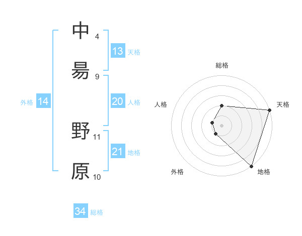 中昜 野原さんの総格は34画の2点!