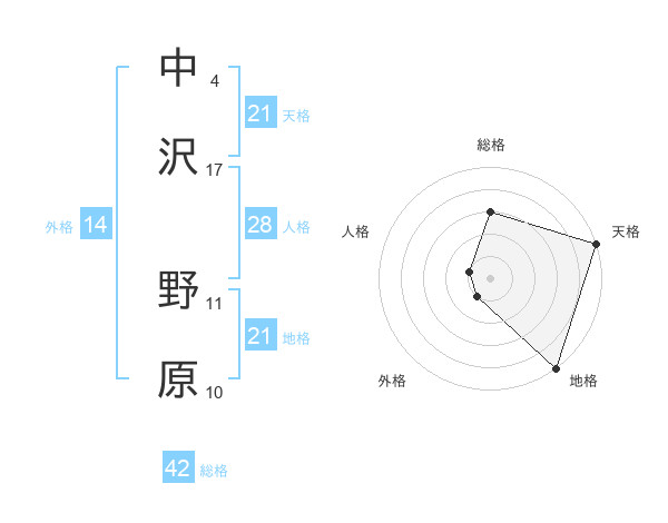 中沢 野原さんの天格は21画の5点!