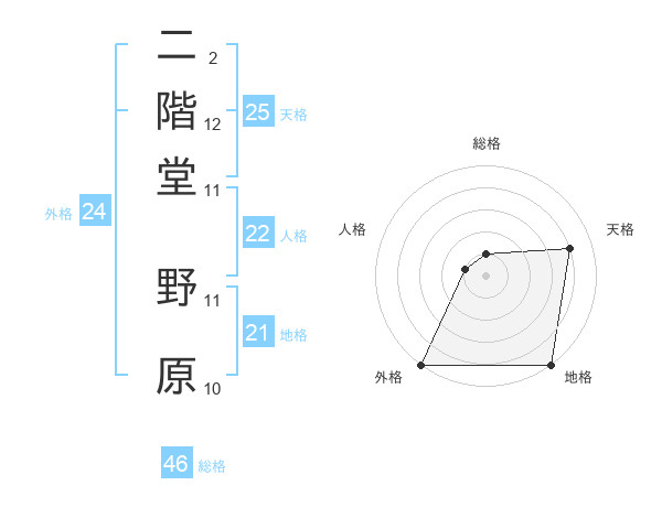 二階堂 野原さんを姓名の画数から五運を鑑定