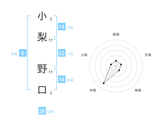 小梨 野口さんの総格は28画の1点!