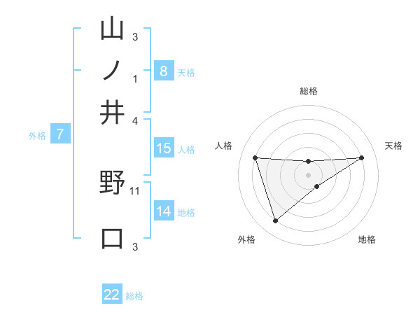 山ノ井 野口さんの総格は22画の1点