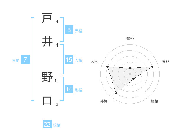 戸井 野口さんの総格は22画の1点!