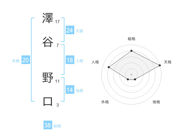 澤谷 野口さんを姓名の画数から五運を鑑定
