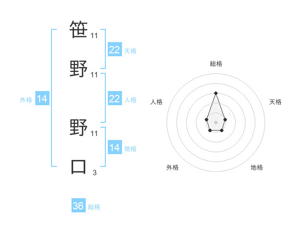 笹野 野口さんの天格は22画の1点!