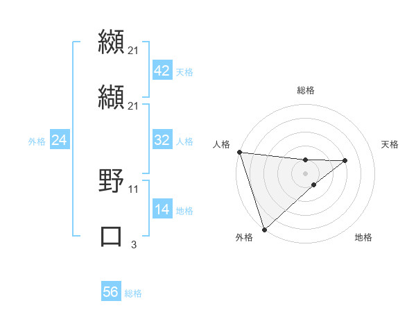 纐纈 野口さんの総格は56画の1点!
