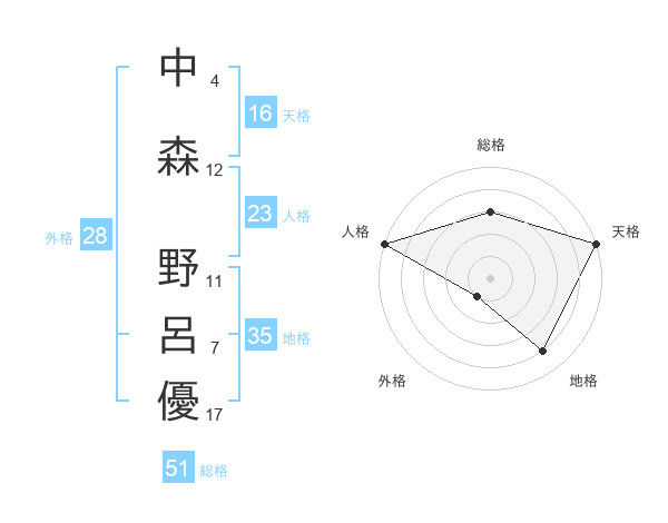中森 野呂優さんを姓名の画数から五運を鑑定