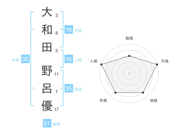 大和田 野呂優さんの総格は51画の3点!
