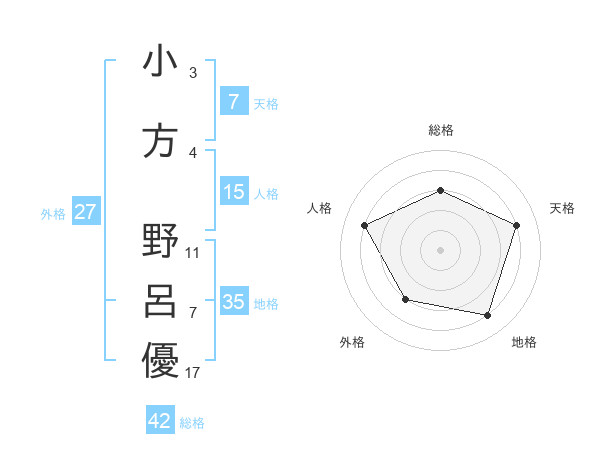 小方 野呂優さんを姓名の画数から五運を鑑定