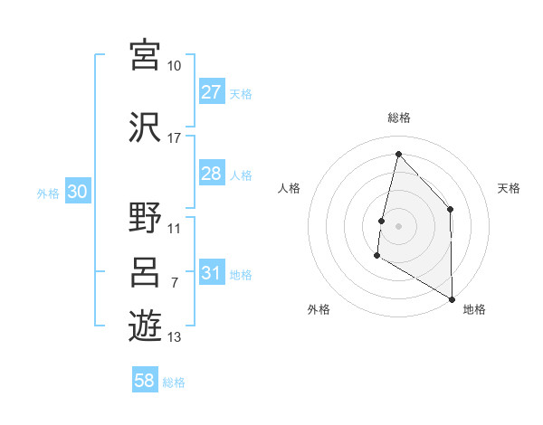 宮沢 野呂遊さんを姓名の画数から五運を鑑定