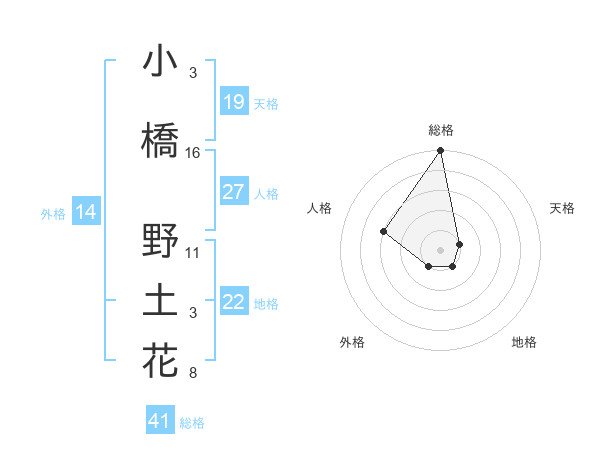 小橋 野土花さんを姓名の画数から五運を鑑定