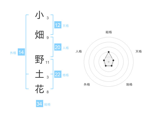 小畑 野土花さんを姓名の画数から五運を鑑定