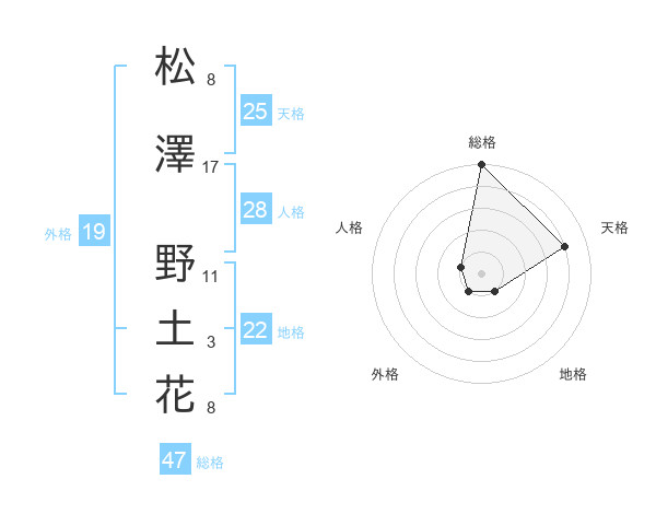 松澤 野土花さんの総格は47画の5点!