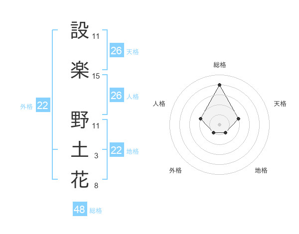 設楽 野土花さんを姓名の画数から五運を鑑定