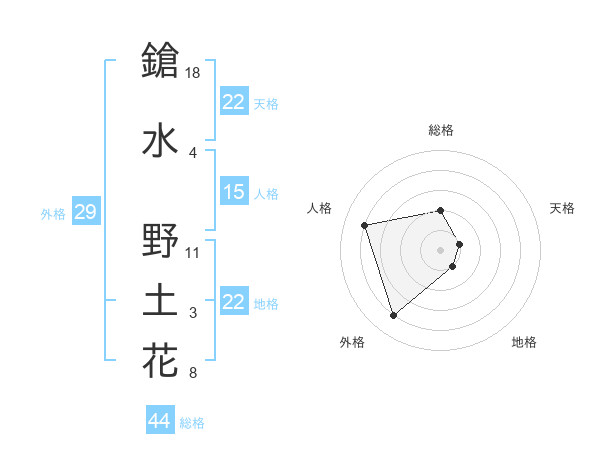 鎗水 野土花さんの天格は22画の1点!