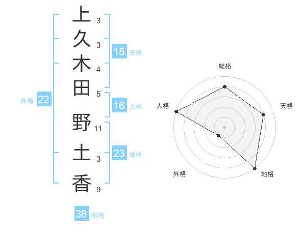 上久木田 野土香さんの総格は38画の4点