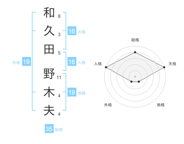 和久田 野木夫さんの総格は35画の4点