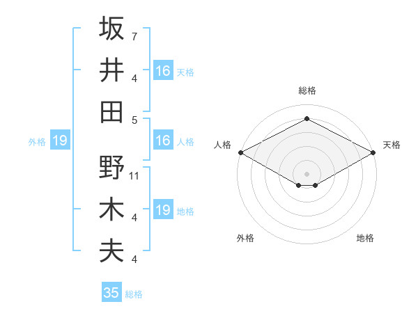坂井田 野木夫さんを姓名の画数から五運を鑑定
