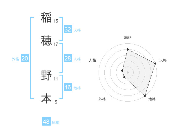 稲穂 野本さんの総格は48画の4点!