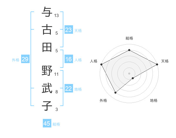 与古田 野武子さんの天格は23画の5点!