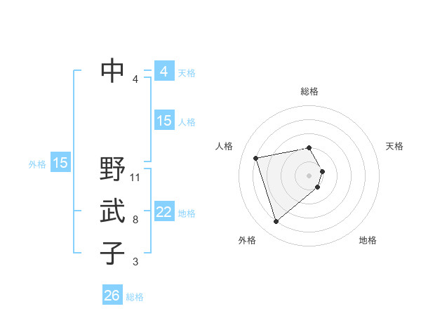 中 野武子さんの外格は15画の4点!