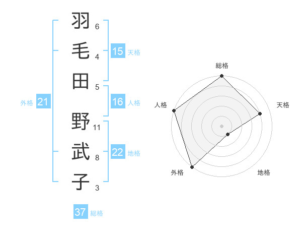 羽毛田 野武子さんを姓名の画数から五運を鑑定