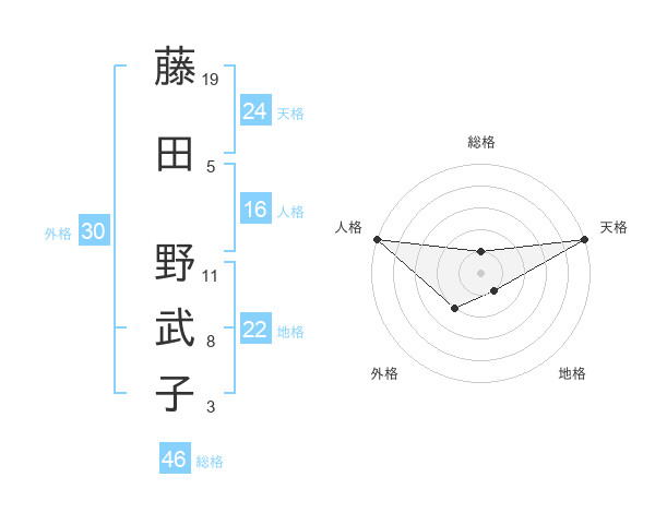 藤田 野武子さんを姓名の画数から五運を鑑定