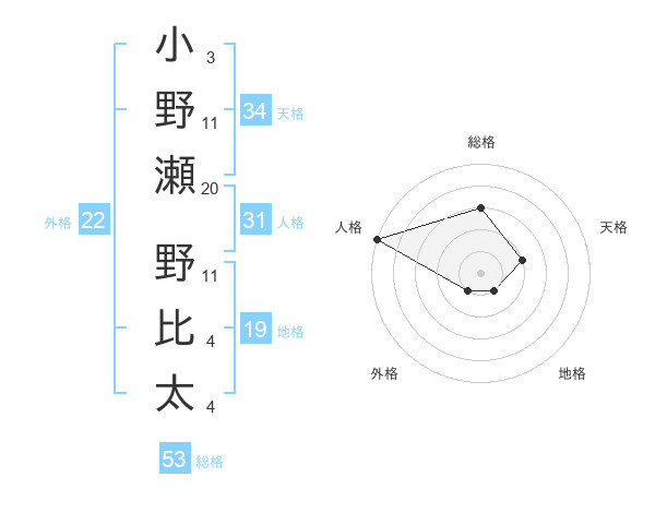 小野瀬 野比太さんを姓名の画数から五運を鑑定