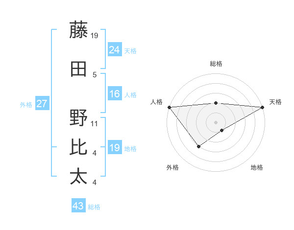 藤田 野比太さんの外格は27画の3点