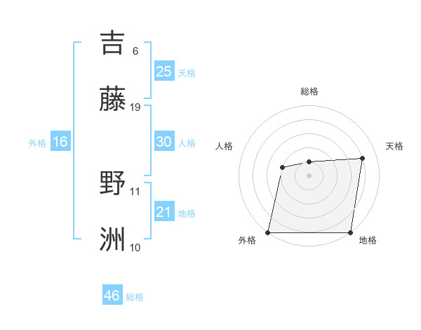 吉藤 野洲さんの地格は21画の5点!