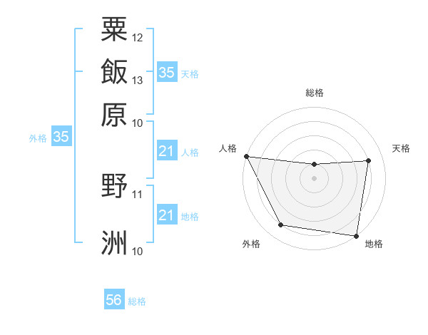 粟飯原 野洲さんを姓名の画数から五運を鑑定