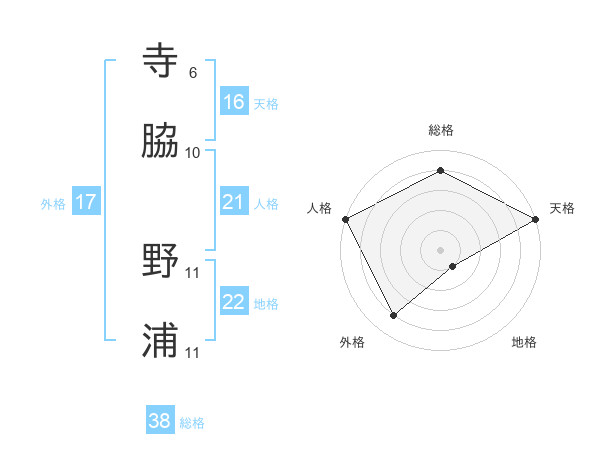 寺脇 野浦さんを姓名の画数から五運を鑑定