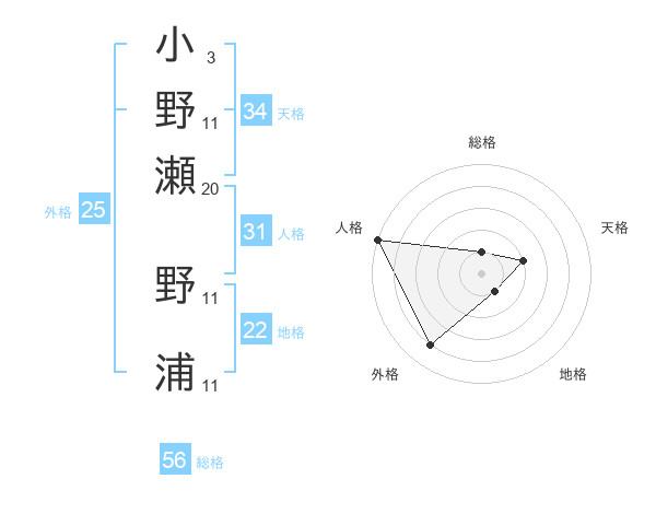 小野瀬 野浦さんの総格は56画の1点!