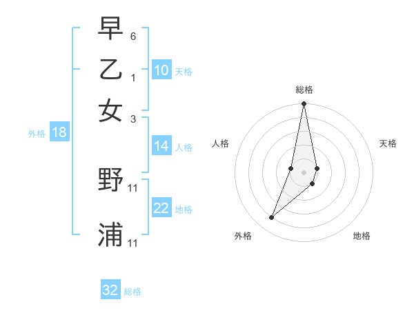 早乙女 野浦さんを姓名の画数から五運を鑑定