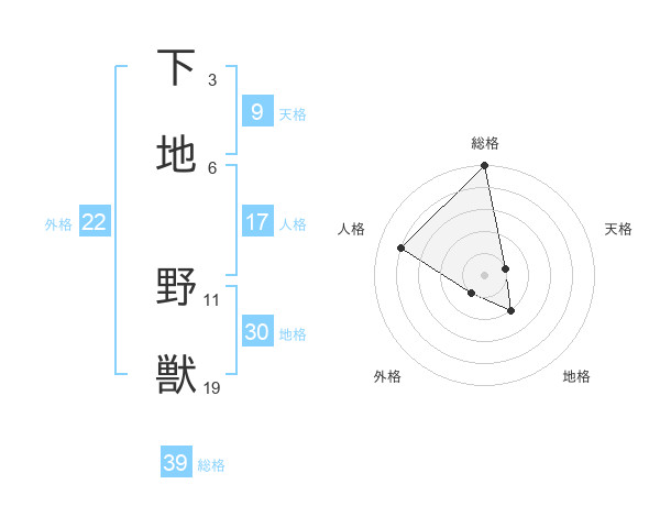 下地 野獣さんの総格は39画の5点!