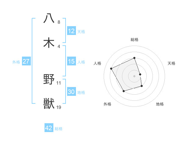 八木 野獣さんの総格は42画の3点!
