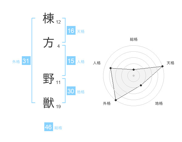 棟方 野獣さんを姓名の画数から五運を鑑定