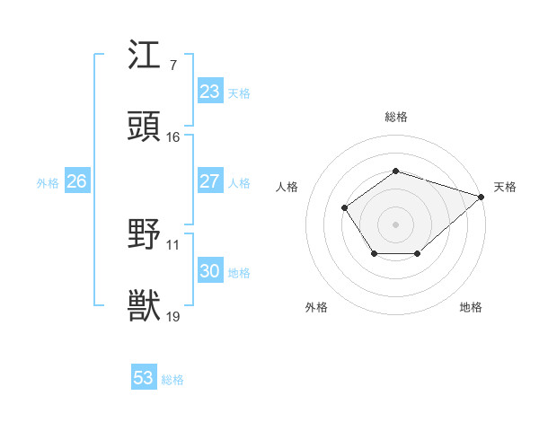 江頭 野獣さんを姓名の画数から五運を鑑定