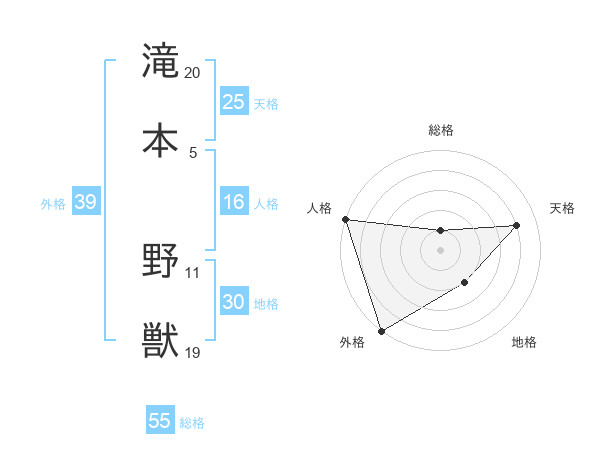 滝本 野獣さんを姓名の画数から五運を鑑定