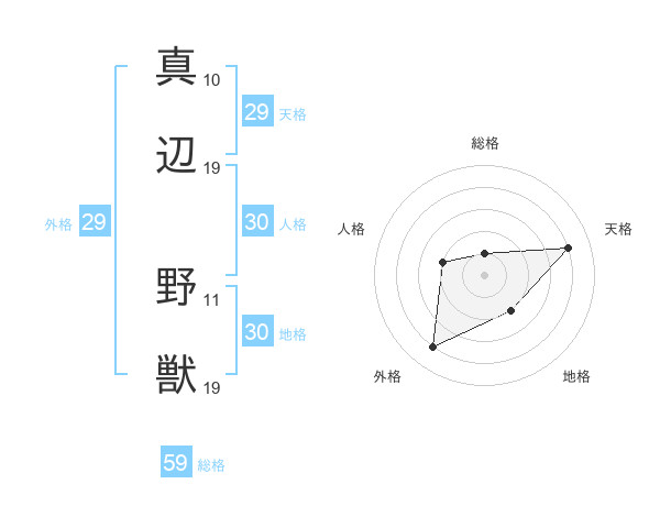 真辺 野獣さんの外格は29画の4点!