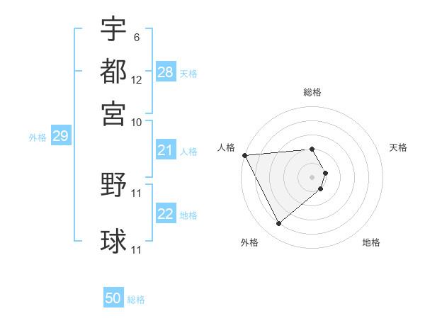 宇都宮 野球さんの総格は50画の2点!