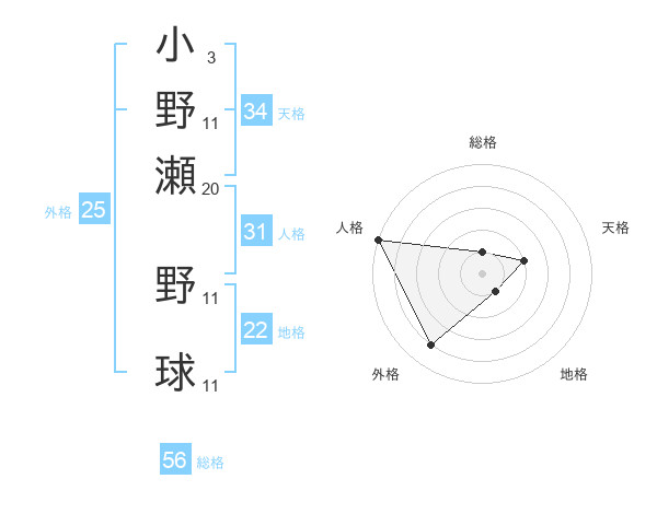 小野瀬 野球さんを姓名の画数から五運を鑑定