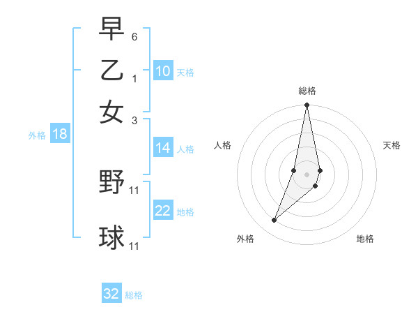 早乙女 野球さんを姓名の画数から五運を鑑定