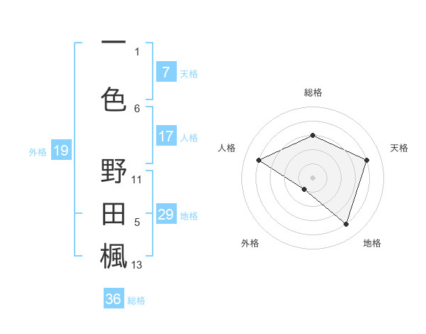 一色 野田楓さんを姓名の画数から五運を鑑定