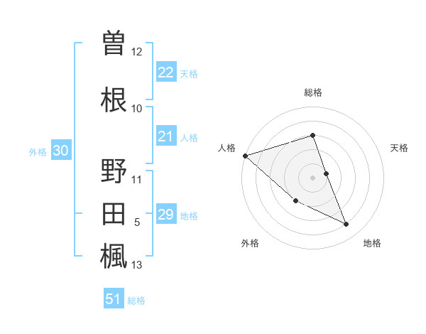 曽根 野田楓さんを姓名の画数から五運を鑑定