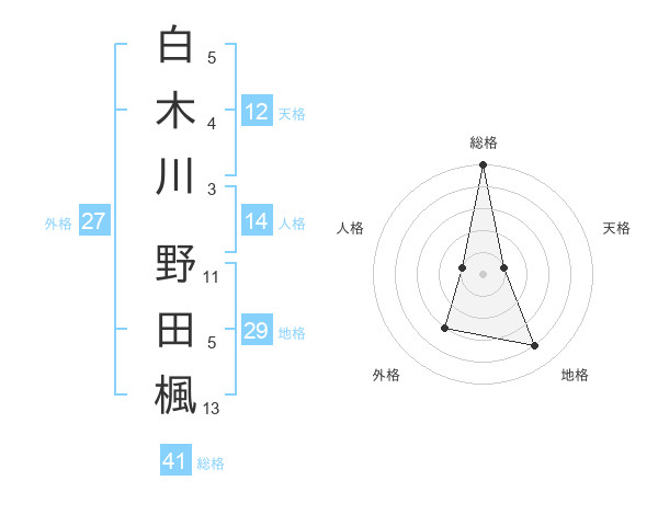 白木川 野田楓さんを姓名の画数から五運を鑑定