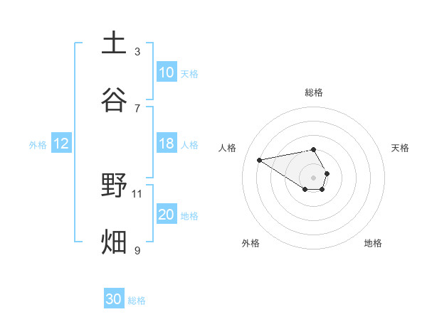土谷 野畑さんを姓名の画数から五運を鑑定