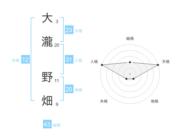 大瀧 野畑さんの総格は43画の2点
