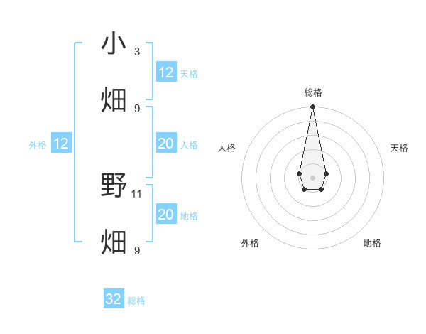 小畑 野畑さんを姓名の画数から五運を鑑定