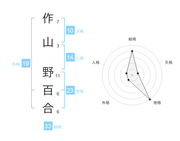 作山 野百合さんの総格は33画の4点!