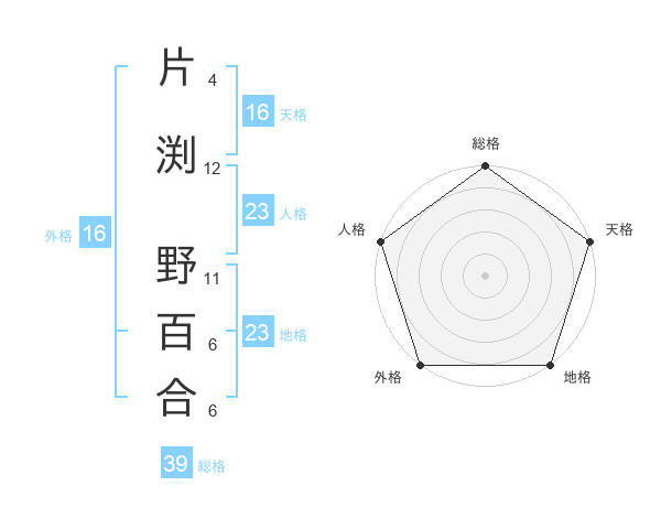 片渕 野百合さんを姓名の画数から五運を鑑定